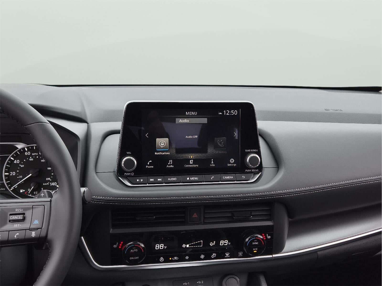 - Radio: AM/FM NissanConnect -inc: 6 speakers plus 2 tweeters, Apple CarPlay, Android Auto, 8" color touch screen display, Bluetooth®, 2 front USB type-C, Wi-Fi hotspot and NissanConnect Services powered by SiriusXM