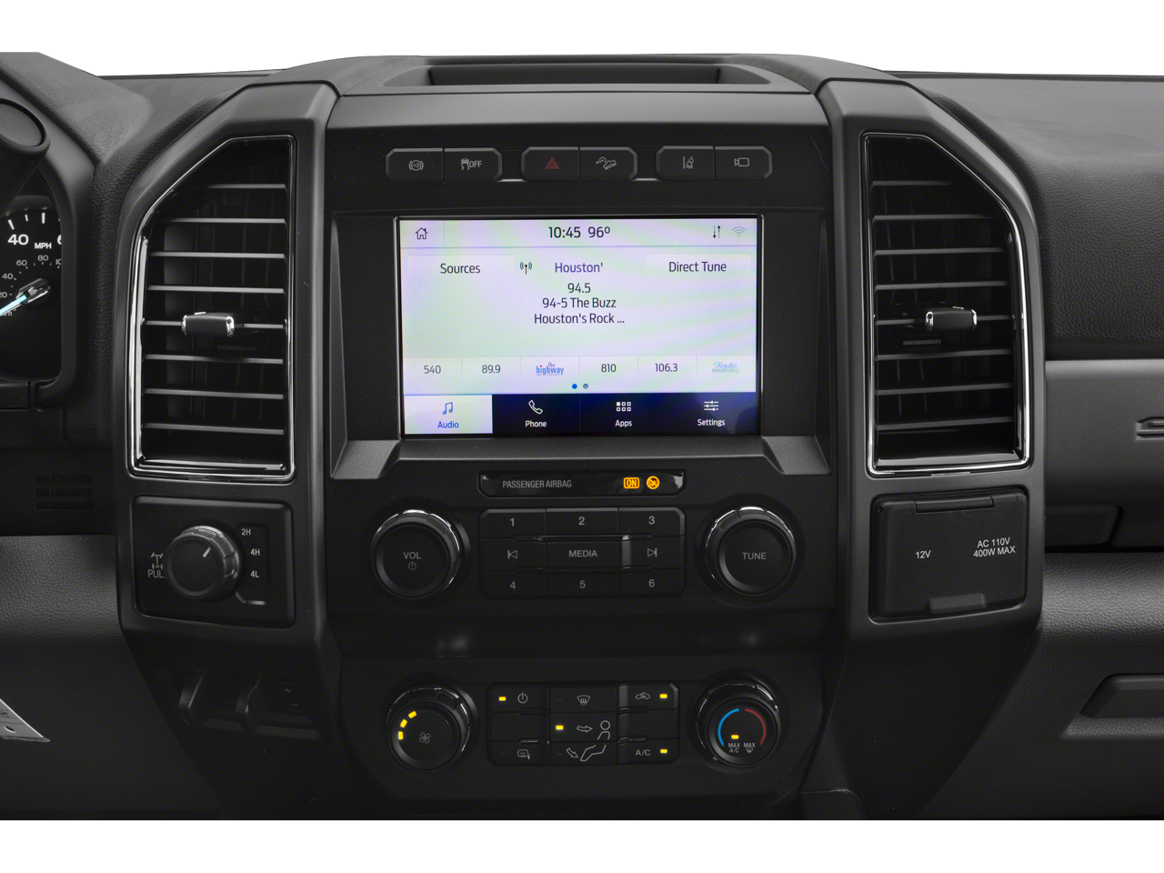 - Includes cloth luxury 40/console/40 front seat, four-way adjustable driver and passenger headrests, driver side manual lumbar, and flow-through console with 110V/150W inverter outlet in rear.